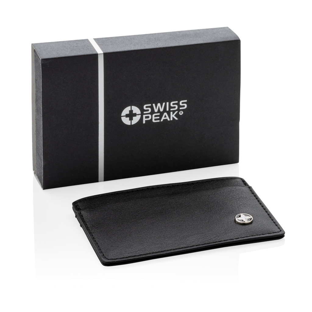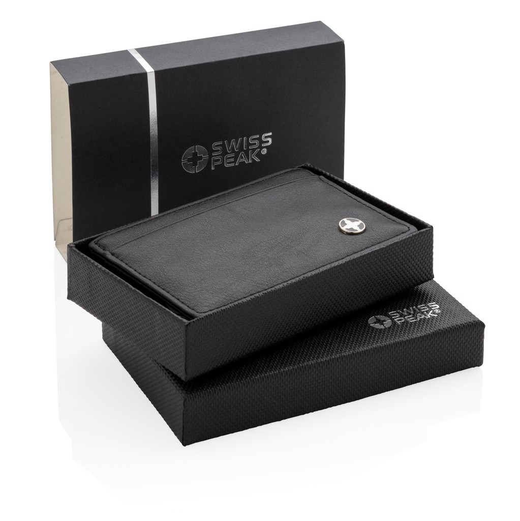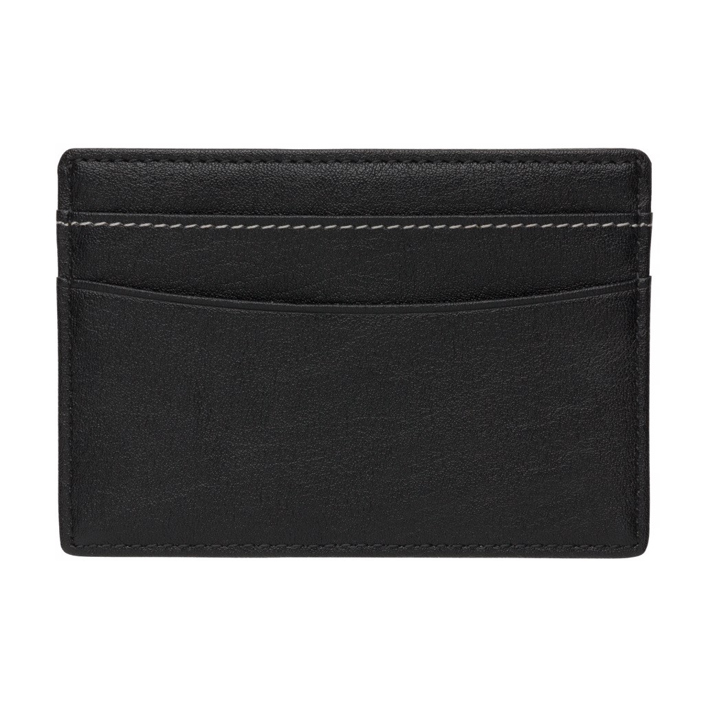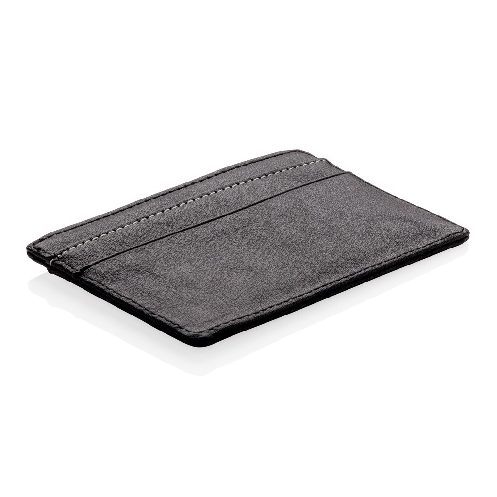Premium PU leather cardholder with 3 shielded anti-skimming card slots with room for 8 cards. Separate middle pocket for cash and coins.