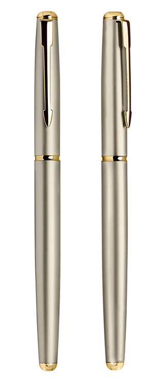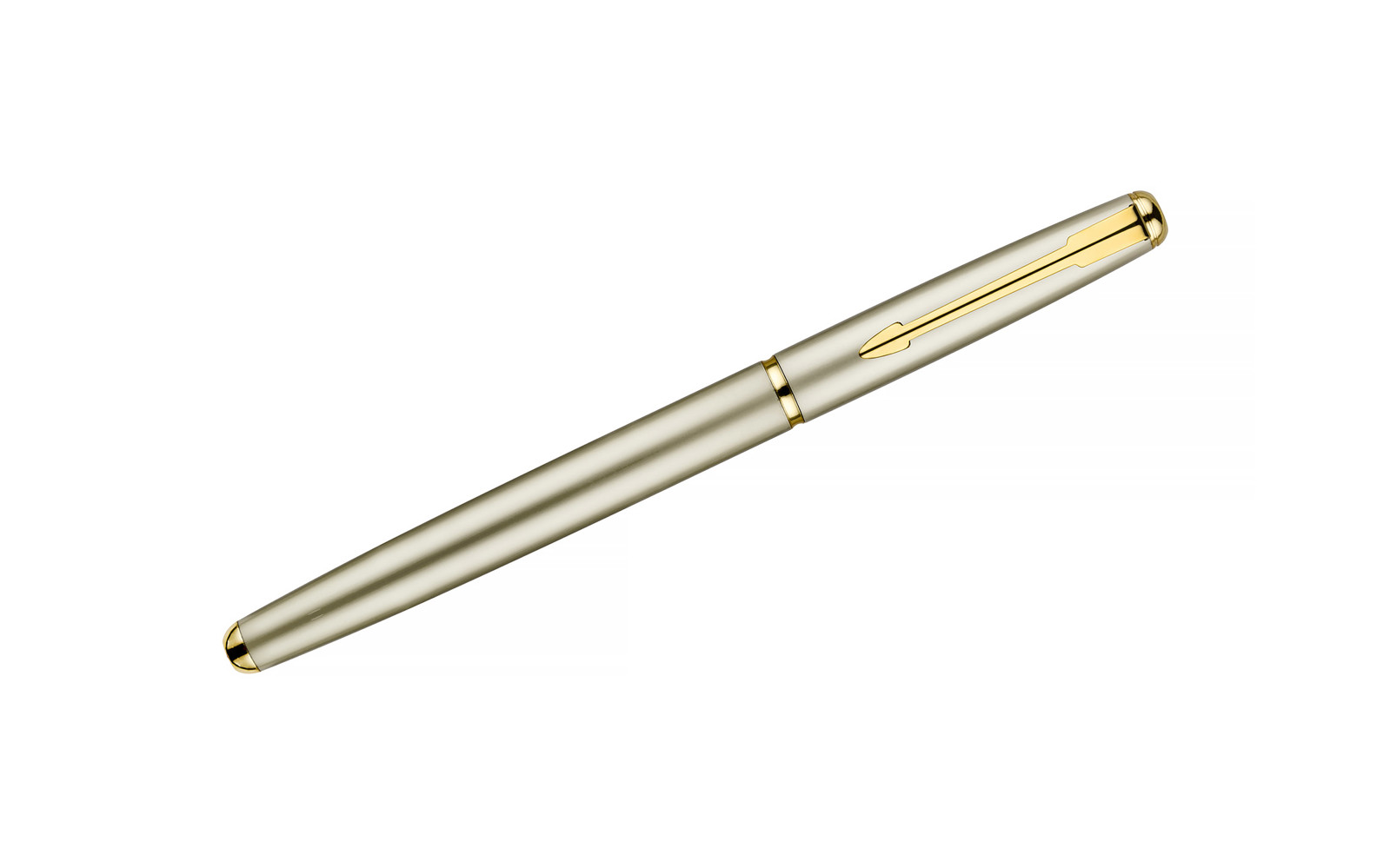 The ballpoint pen made of metal with golden finish. Classical pattern ensures timeless elegance.