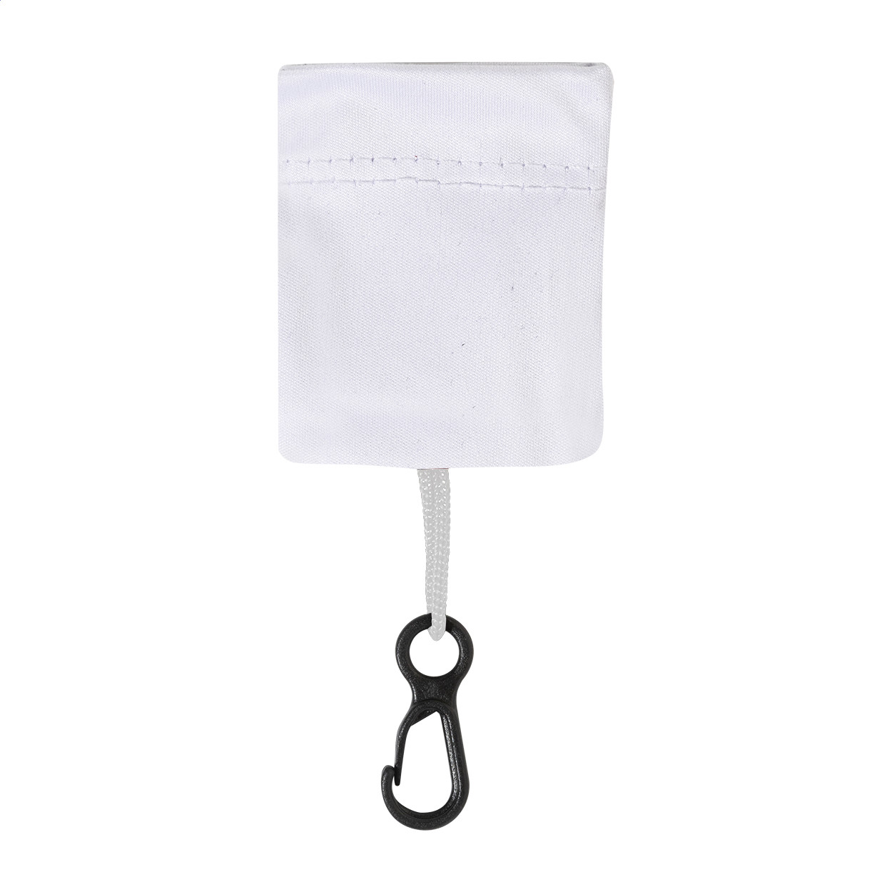 100% RPET microfibre (220 g/m²) cleaning cloth for glasses and screens. In matching material carry pouch with PP carabiner. Cloth size: 15×15 cm.