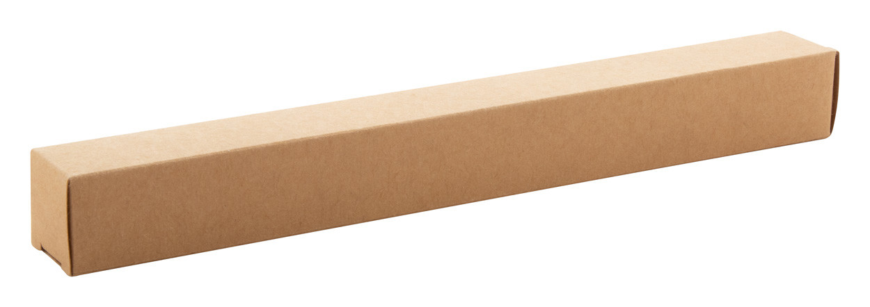 RPET polyester hand fan with wooden ribs. In kraft paper box.