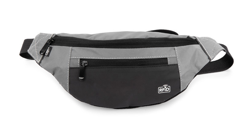 The MARTE hip bag is a useful gadget when running or hiking. Made of reflective material, it increases visibility and safety. It has one larger compartment and a small outer pocket - all zipped. It is equipped with a film to prevent theft of credit card data by blocking the RFID signal. The raw material is recycled rPET polyester.