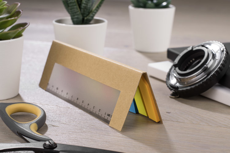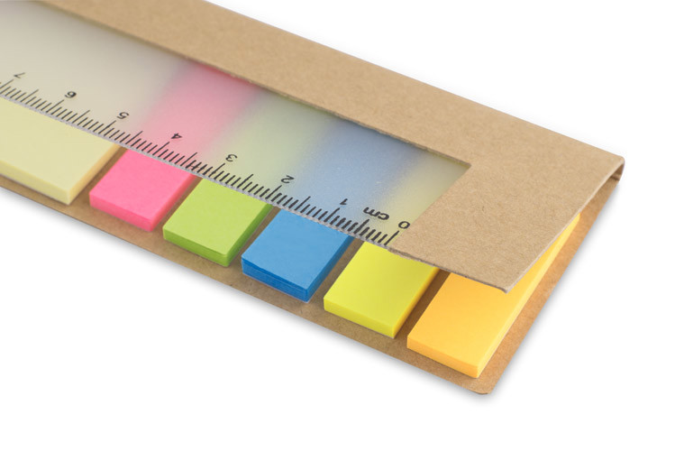 Handy set of colourful sticky notes and a ruler. Indispensable on any desk.