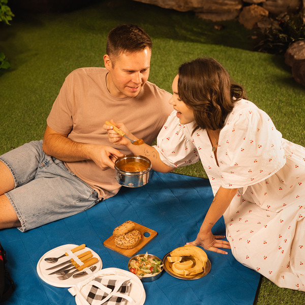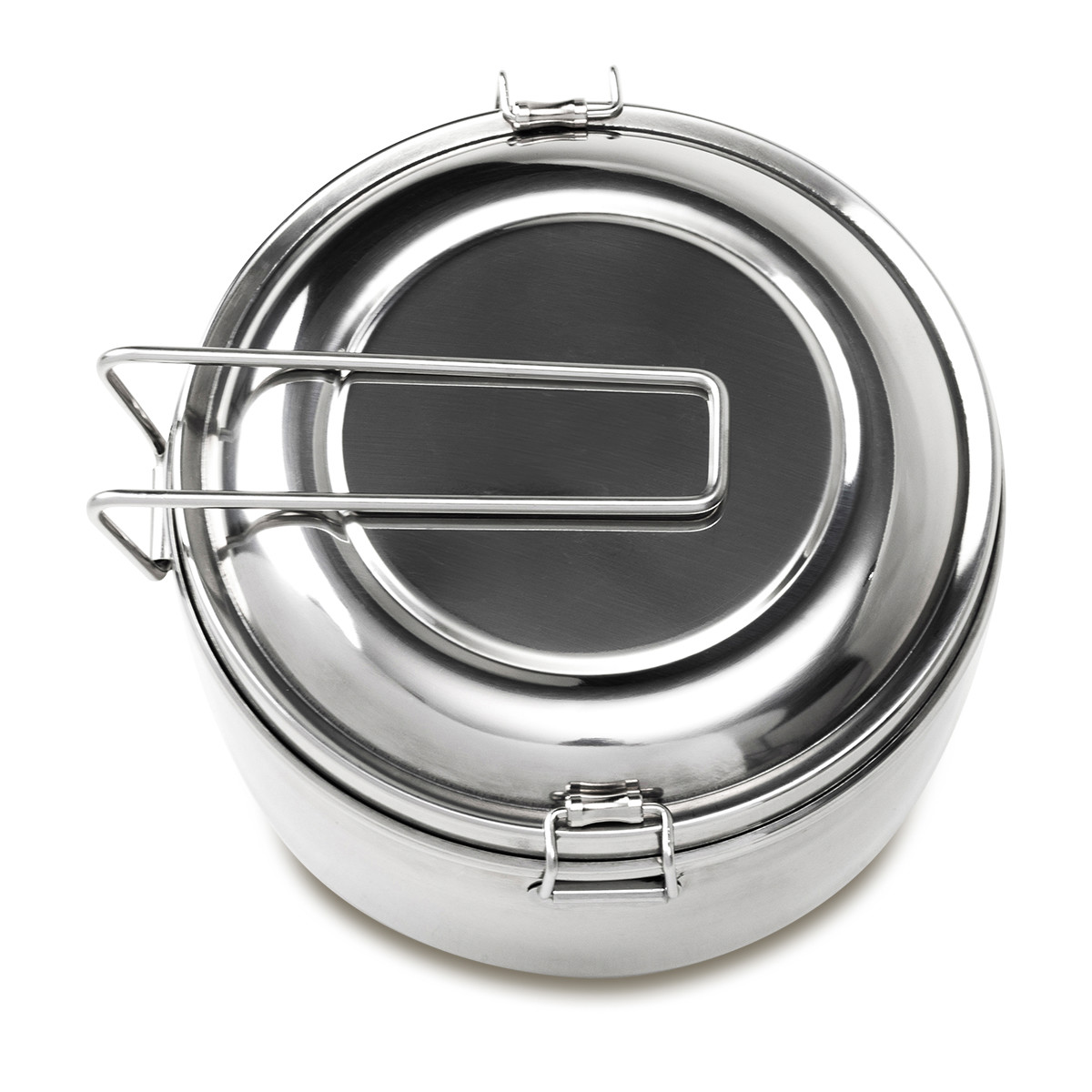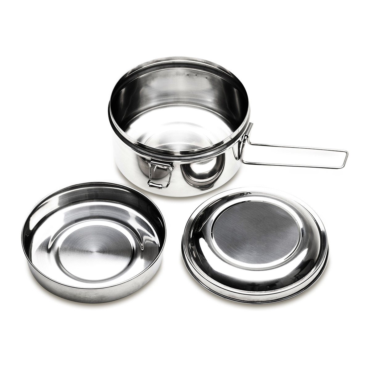 3-piece stainless steel hiking set. It includes: pot with a capacity of 1 liter, smaller pot with capacity of 350 ml and lid. The whole set is closed with side buckles. It is perfect for camping and outdoor activities.