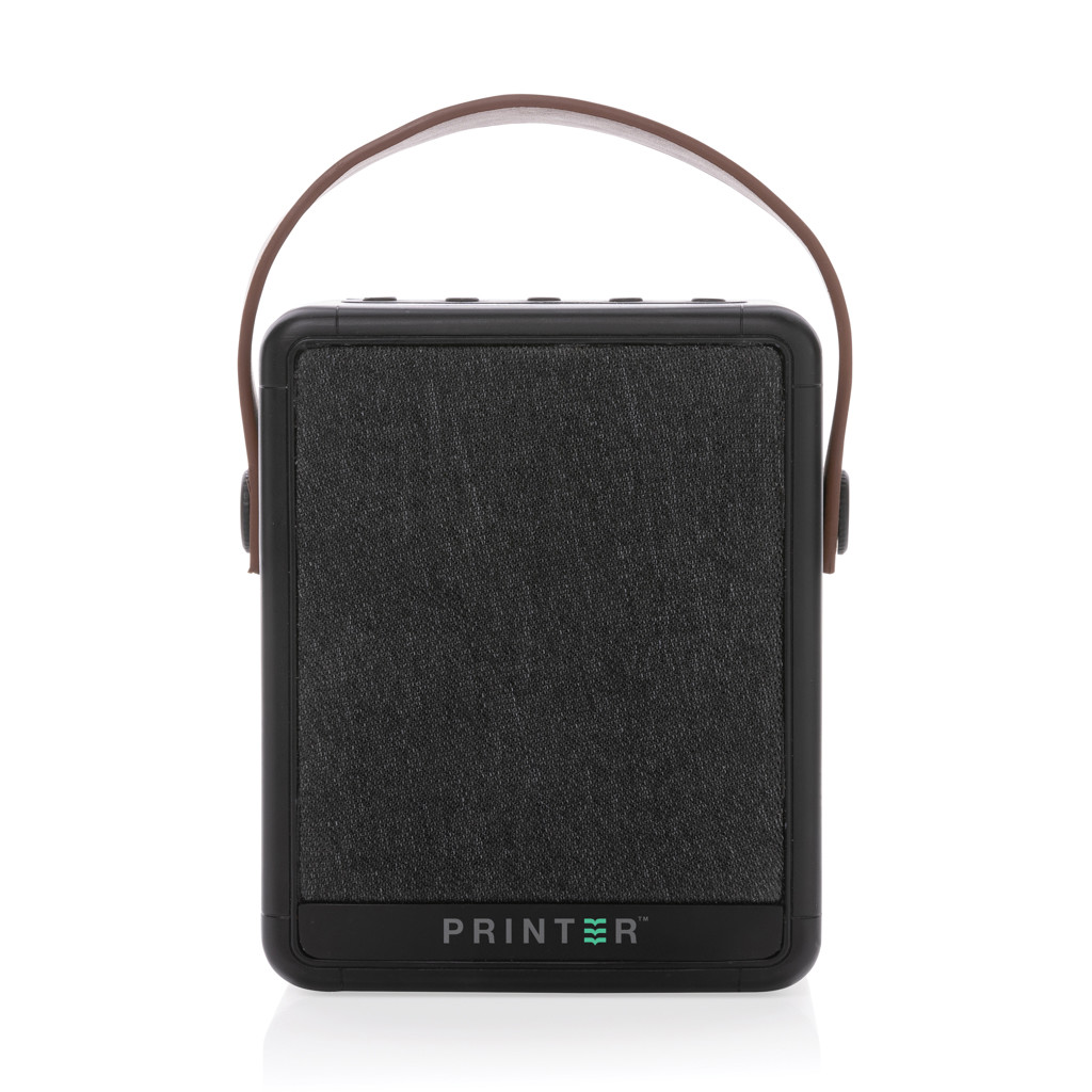 Powerful 12W wireless speaker with integrated large solar panel in RCS certified recycled ABS. Total recycled content: 16% based on total item weight. RCS certification ensures a completely certified supply chain of the recycled materials. The speaker uses high quality monocrystalline solar panels with 19% conversion rate. Charge rate depends on conditions. With integrated LED lamp to use the speaker even when the sun has set. The speaker is equipped with a 2000 mAh battery to ensure up to 8 hours of playing time and BT5.3 for smooth connection and clear sound. Connection range up to 10 metres. With mic and pick up function to answer calls. Charging speed solar: 5V/300mA. Packed in FSC mix FSC® box. Including RCS certified recycled TPE charging cable. Item and accessories 100% PVC free