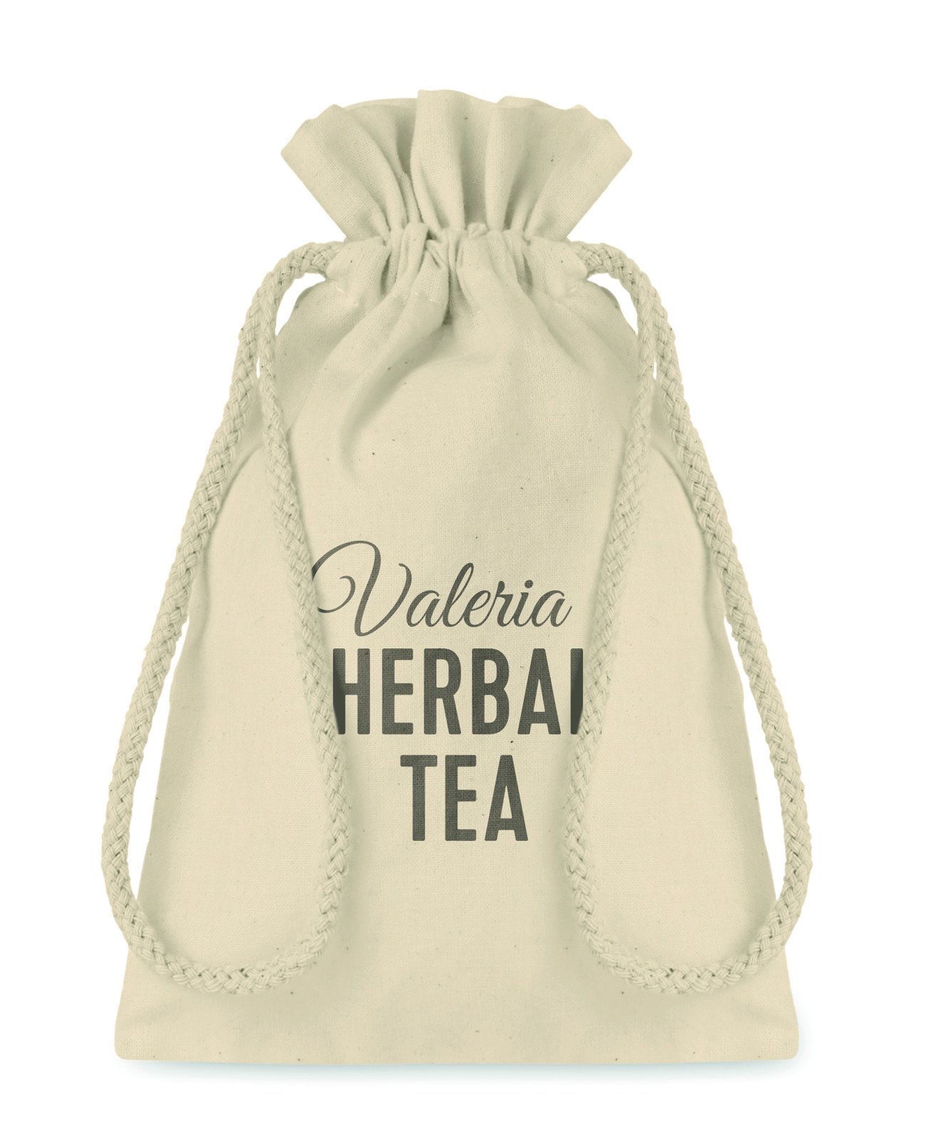 Small gift cotton draw cord bag. Size approx. 14 x 22cm. 105 gr/m².