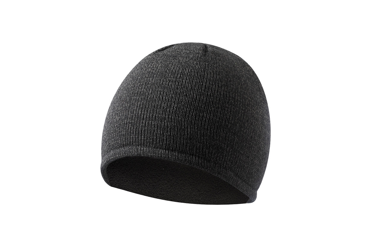 Acrylic sport winter hat in reflective material with polar fleece lining.