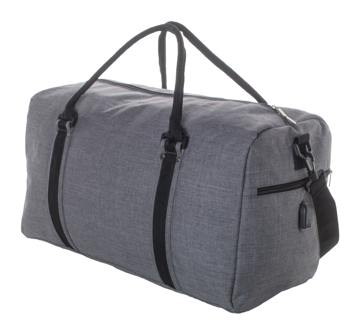 Sports bag with zipped compartment, with shoulder strap and built-in USB connection for power banks. 600D polyester.