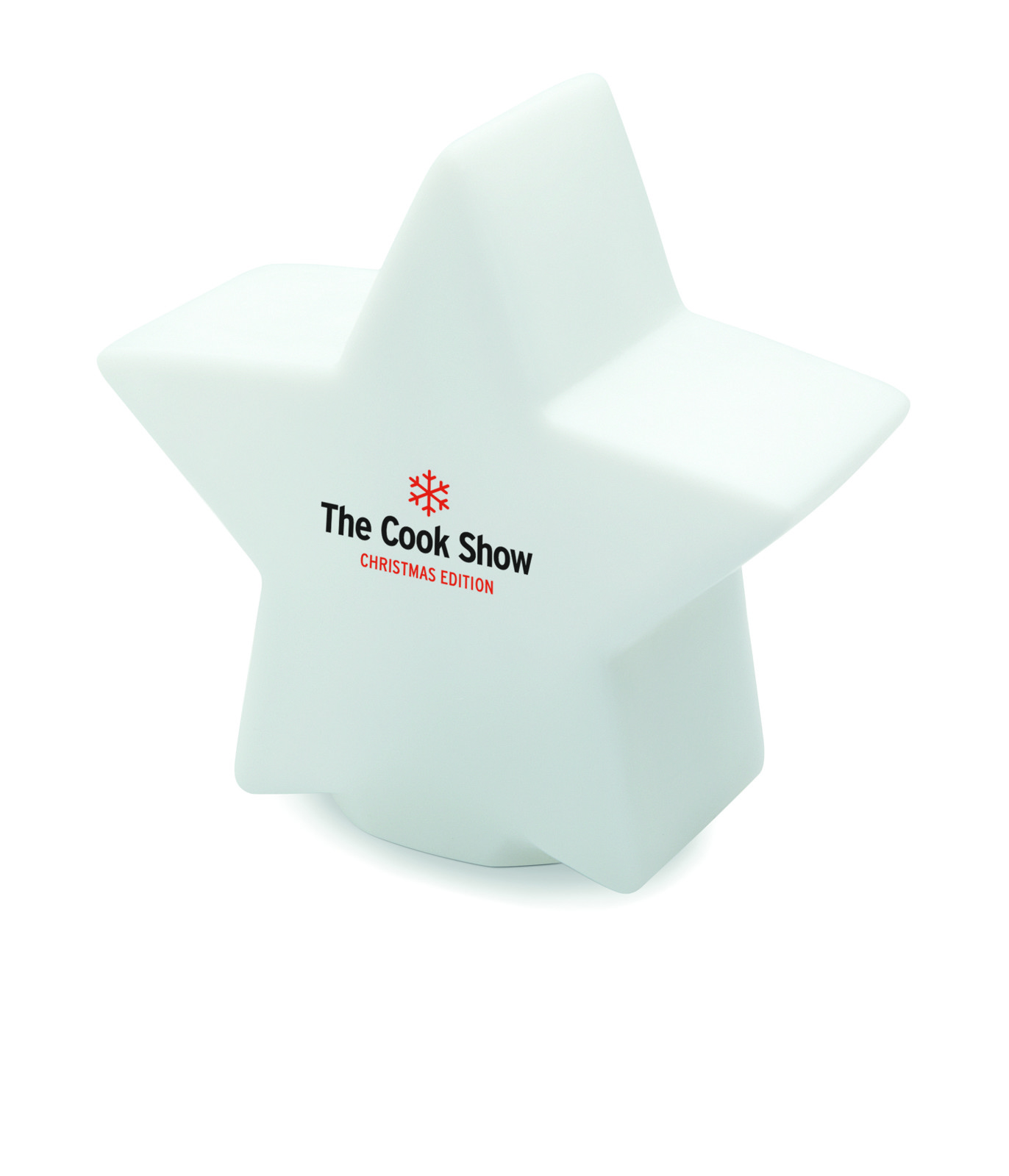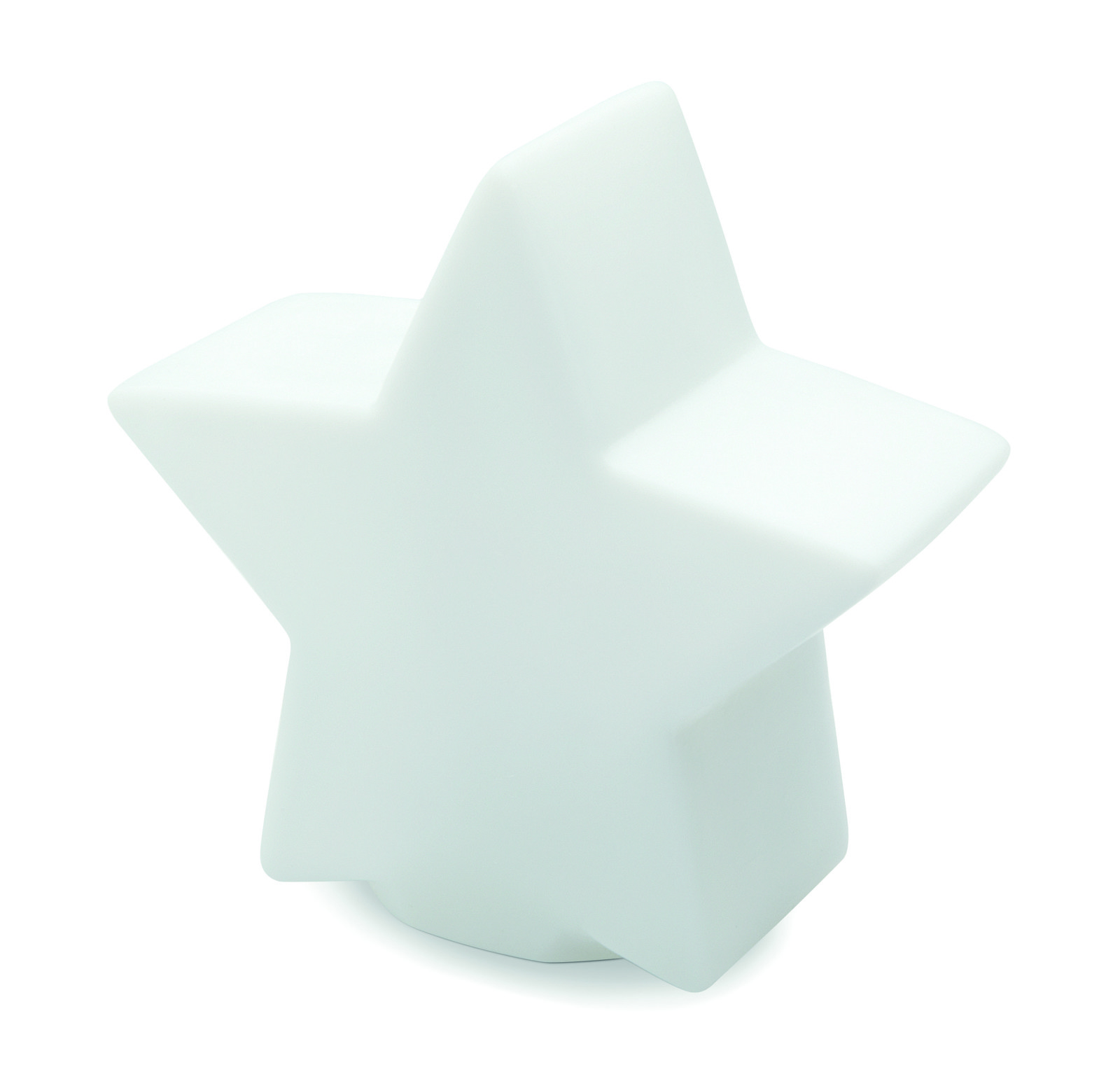 PVC LED colour changing light in star shape. Mood lights colours: white, blue, purple, red, yellow and green. 3 LR44 batteries included.