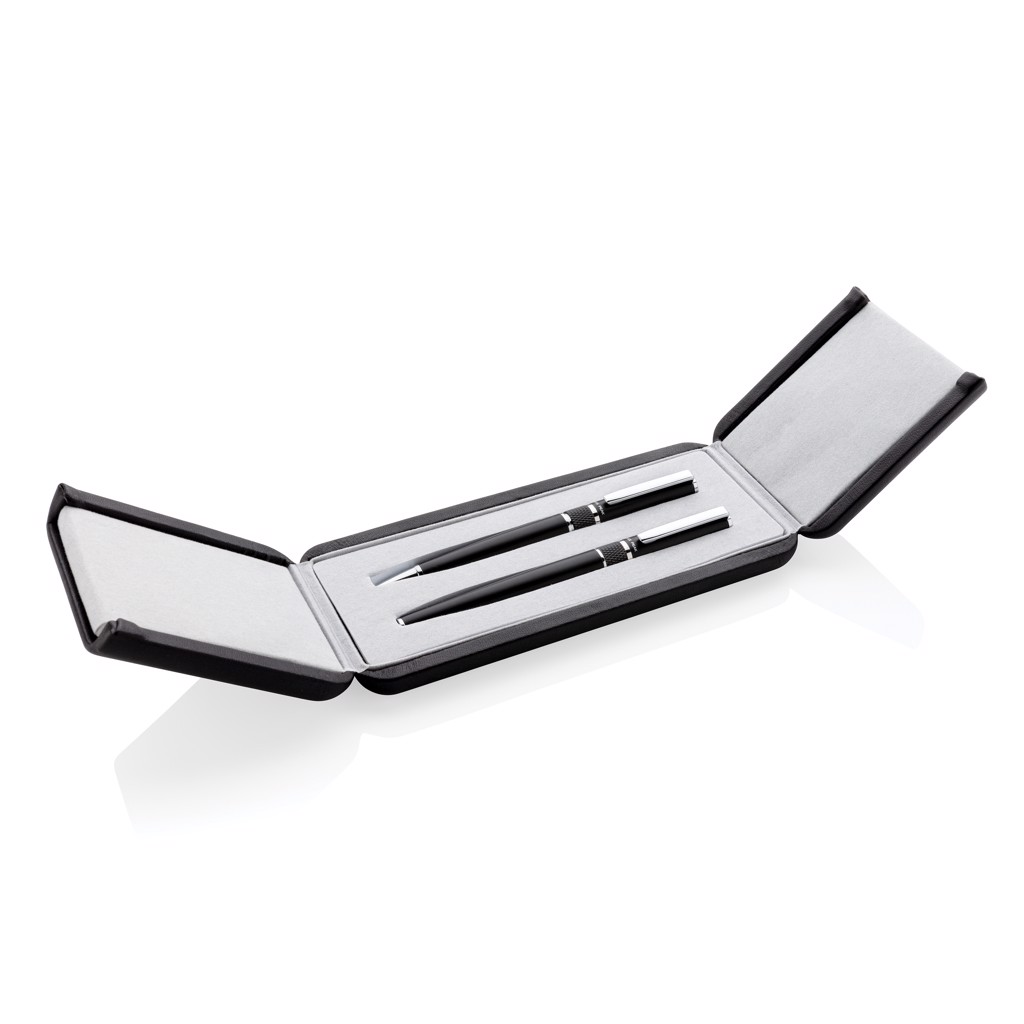This luxury pen set brings elegance and style to your writing. The set consists of a ball pen and roller ball with blue ink in a beautiful gift box with embossed logo.The pen has a Dokumental ink refill with a t/c ball for ultra smooth writing. The roller ball has a blue Dokumental ink refill. Average writing length for both pens is 1200 metres.
