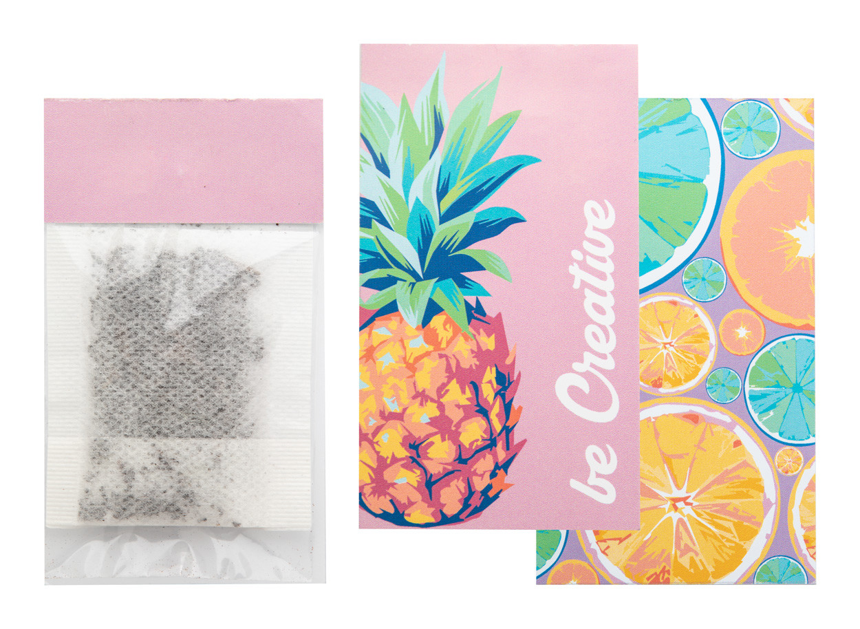 Tea bag in custom made paper cover with your graphics. Contains 2,5 grams (1 bag) of Earl Grey tea. MOQ: 100 pcs.