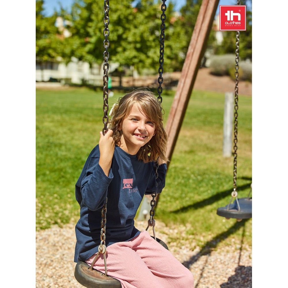 Long-sleeved T-shirt (150 g/m²), with enzymatic treatment, for children in jersey fabric (100% cotton using sustainable farming practices). 1x1 rib collar with jersey reinforcement band. Tubular T-shirt with regular cut and double stitching on the sleeves and bottom of the article. Sizes: 2, 4, 6, 8, 10, 12