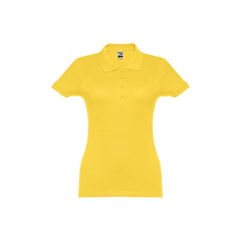 100% carded cotton pique women's short sleeve polo (195 g/m²) (colour 183: 85% cotton/15% viscose). Features a rib collar and sleeves, the collar is reinforced with piqué ribbon. On the front, next to the collar, there are four matching colour buttons (extra button inserted in the inner seam). Piece cut and sewn. Sizes: S, M, L, XL, XXL Sizes: S, M, L, XL, XXL