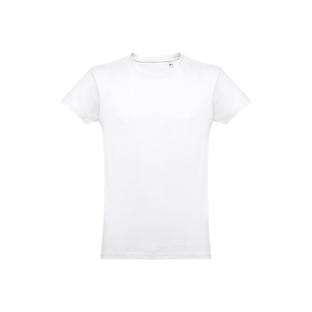 Tubular t-shirt for men with a regular cut, in jersey 100% cotton (150 g/m²) with carded cotton yarn. Features a 1x1 rib collar with jersey reinforcement ribbon and double seam on sleeves and hemline. Sizes: XS, S, M, L, XL, XXL