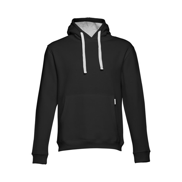 Sweatshirt (unisex) 50% cotton and 50% polyester (320 g/m²) with carded interior. Features rib 1x1 cuffs and waistband, marsupial pocket and hood with contrasting colour strings. Sizes: S, M, L, XL, XXL