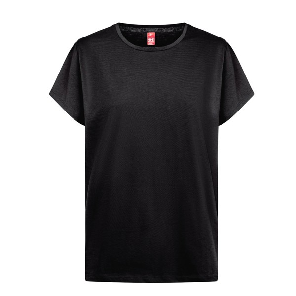 Regular cut T-shirt for women (150 g/m²) with enzymatic treatment in jersey fabric (100% cotton using sustainable farming practices). It has a thin double collar in jersey with a satin reinforcement ribbon. Cut and sewn with double stitching on the sleeves and bottom. Sizes: XS, S, M, L, XL, XXL