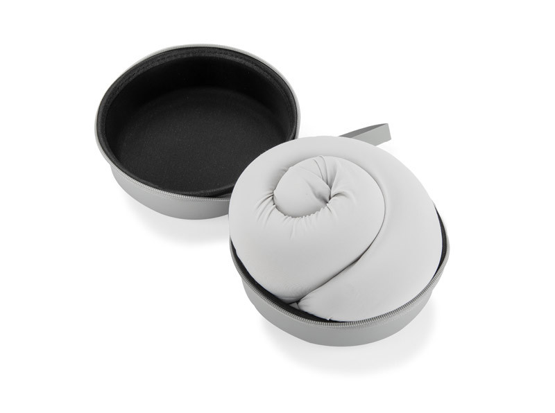The OPI travel pillow in a case is a functional premium promotional gadget designed for maximum comfort when travelling. The memory foam filling moulds to the shape of the neck and head, ensuring comfort even on long journeys. With a practical push button, the cushion can be fastened around your neck or clipped to your luggage. After use, simply roll it up and stow it in the rigid zipped case, which also features a lanyard with a snap fastener for easy attachment to your suitcase. The pouch effectively protects the cushion from dirt and can be used as a handy storage compartment for small items when travelling.