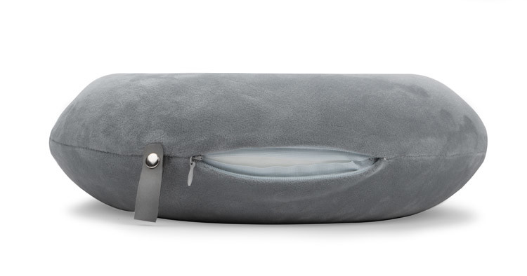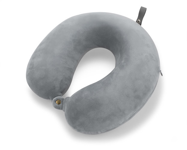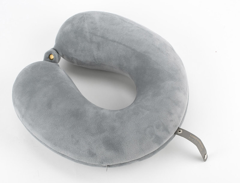 Pillow made of memory foam. It gradually adapts to the contours of the head and neck without causing the feeling of pressure. The pillow has a snap closure which prevents slippage off the neck. It also has a snapped lanyard made of eco-leather so that you can easily attach the pillow to your briefcase or backpack.