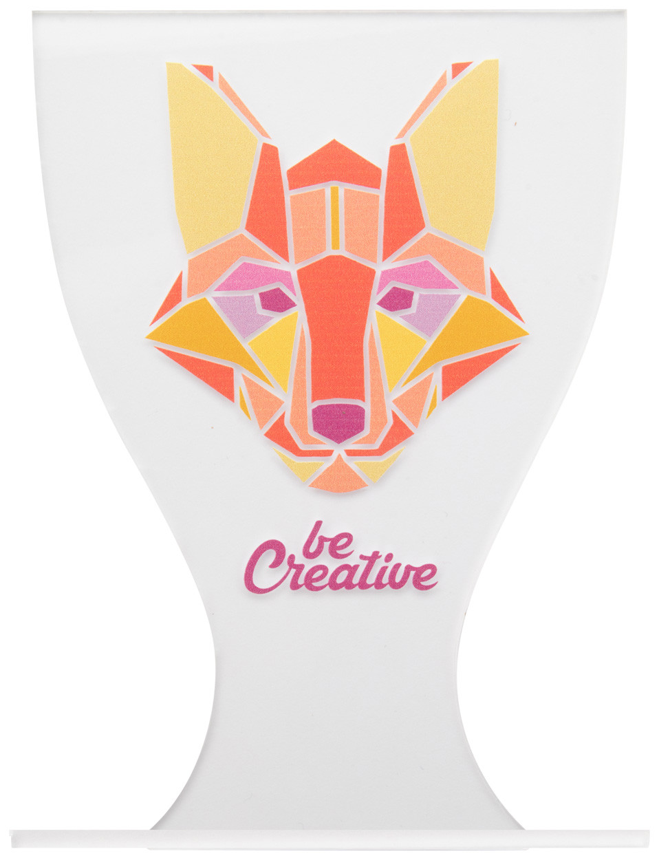 Custom made acrylic trophy with unique shape and full colour graphics. Price inlcudes UV LED printing. MOQ: 50 pcs. Delivered flat-packed.