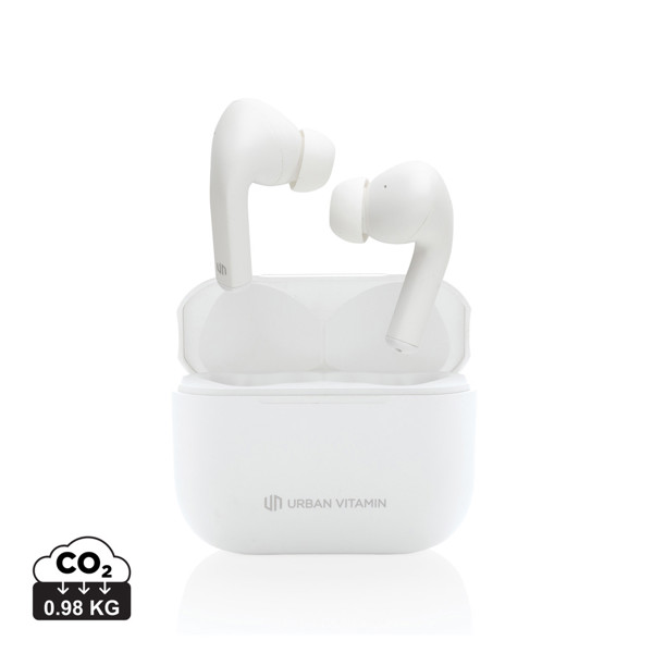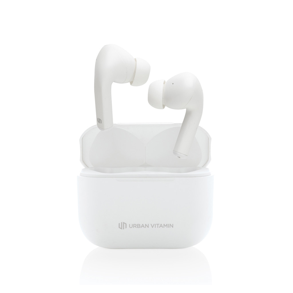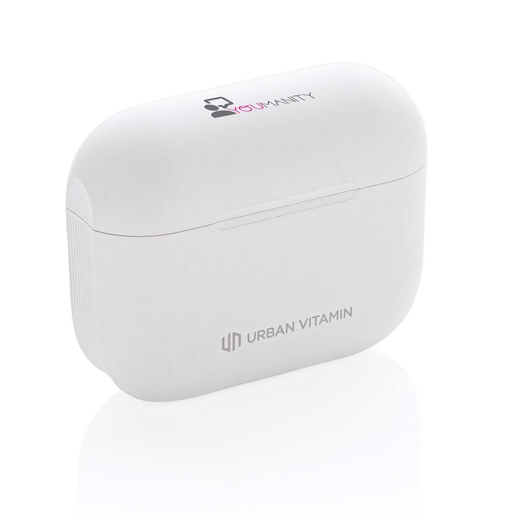 Unblock unwanted external noise with Active Noise Cancelling (ANC). When you want to hear the sound around you simply switch to transparency mode with one single tap. The comfortable earbuds have up to 5 hours of listening time and the charging case allows up to 20 hours of playback. The earbuds are engineered to deliver a powerful yet balanced sound. The result is a deep sound that brings the emotion of the music directly into your ear. With mic for clear calling and touch function to answer call or pause the earbuds. The IPX 4 rating makes the earbuds weather and sweat proof so no worries to take them outside. ANC level: up to 25 DB. Urban Vitamin items are made without PVC and packed in plastic reduced packaging.