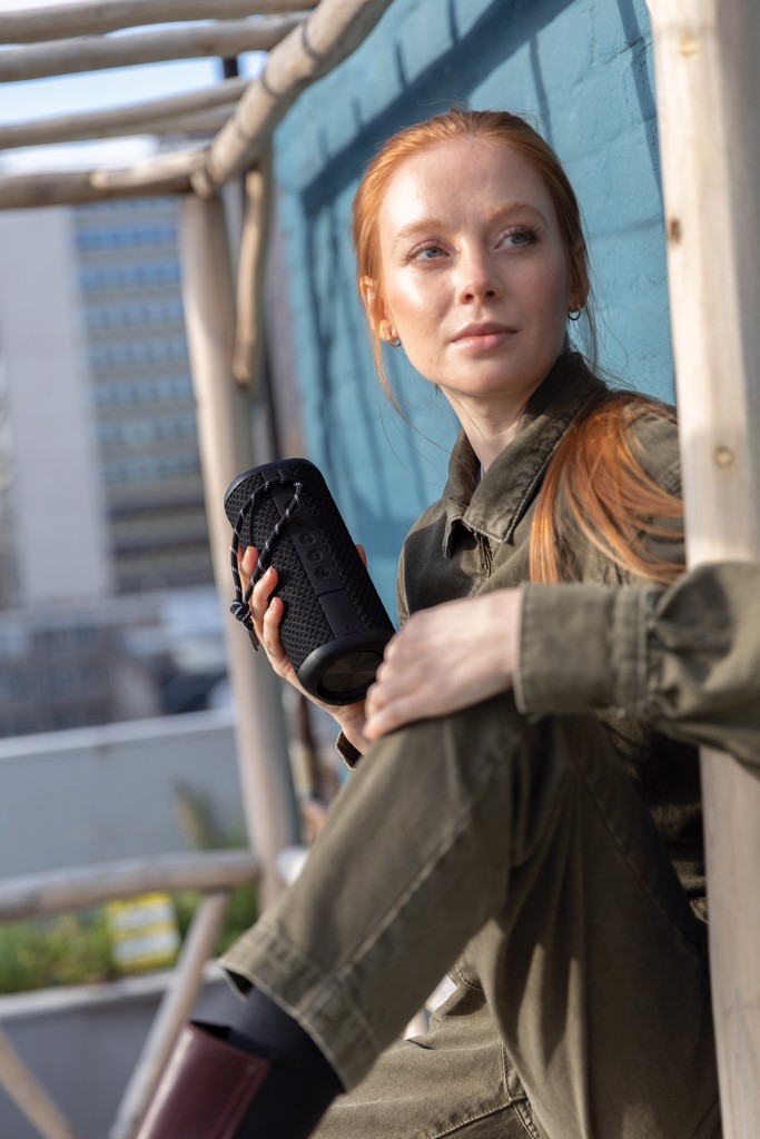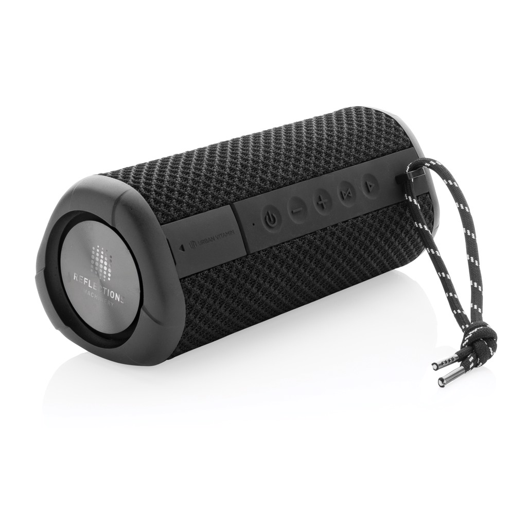 Bring your speaker wherever you go. Hanging out at the beach? Perfect! Party at the pool? Covered! Sudden rain? No worries! Your speaker is IPX7 waterproof up to 1 metre deep and max 30 minutes! After a sandy day at the beach simply rinse it off under the shower. The 10W speaker has a massive bass supported by two subwoofers on both ends of the speaker. The powerful sound is enough to keep a good sized party going until sun rise. The durable fabric and strong housing will make sure the speaker can even handle a little bump. Enjoy up to 15 hours of play time! If you receive a call, just answer it with the integrated mic in clear quality. Urban Vitamin items are made without PVC and packed in plastic reduced packaging