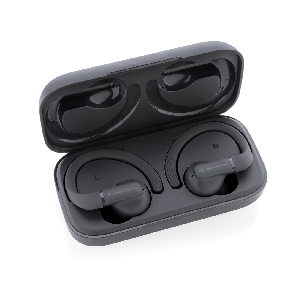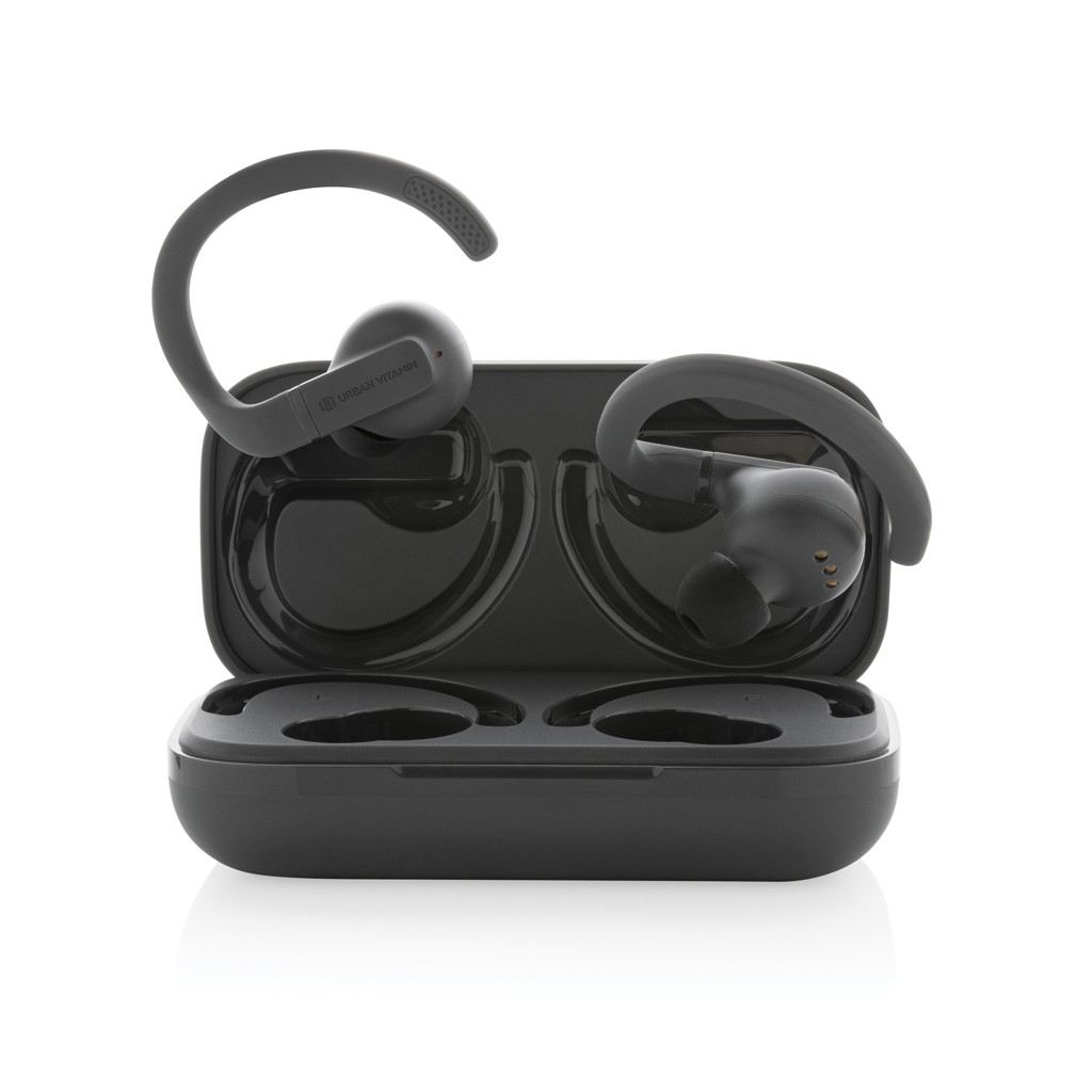 Outperform yourself and take your fitness to the next level with these perfect fit work out earbuds. The customisable, perfect fit ear hooks are adjustable with multiple ear tip options for extended comfort, and are made to stay in place, no matter how intense your workout is. These lightweight earbuds are built for peak performance with a sturdy design for IPX5-rated sweat, dust and water resistance. With up to 8 hours hours of listening time due to advanced BT 5.3 in each earbud and powerful, balanced sound, you’ll always have your music to motivate you. The earbuds and 600 mah charging case are made with made with RCS (Recycled Claim Standard) certified recycled ABS/TPE. Total recycled content: 55 % based on total item weight. RCS certification ensures a completely certified supply chain of the recycled materials. The earbuds can be re-charged 3 times fully in the charging case. Urban Vitamin items are made without PVC and packed in in plastic reduced packaging.