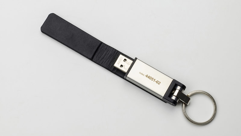 Portable USB flash drive with a capacity of 8 GB made of metal and leather-like material (PU). We will make your logo by engraving method. USB 2.0 standard, write speed: 4 MB/s; read speed: 14 MB/s. The USB flash drive comes with a 5-year manufacturer's warranty and is CE certified.