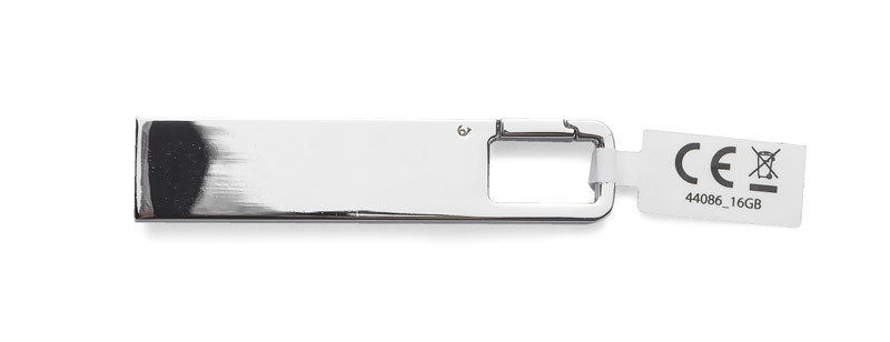 Small, entirely made of metal, portable USB memory stick with capacity of 16 GB. Equipped with a practical snap hook. USB standard: 2.0; writing speed: 4.5 MB/s; reading speed: 12 MB/s. The USB flash drive has the manufacturer’s warranty for the period 5 years and the CE Certificate.
