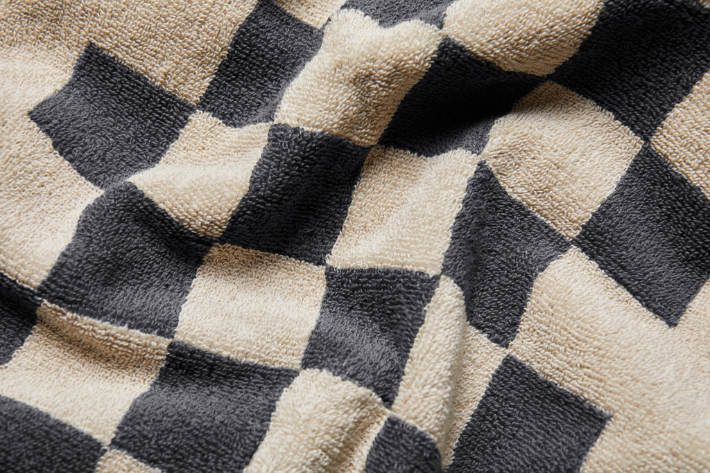 Experience the perfect blend of style, comfort, and absorbency with these exquisite towels. This set offers exceptional softness and functionality. With a plush 500 gsm weight, these towels offer good absorbency and softness. The modern checkerboard pattern adds sophistication to your bathroom decor. The set includes two towels measuring (135x165cm) and two smaller, practical towels measuring (65x40cm). Each set is thoughtfully packaged in FSC®-certified kraft packaging. The Organic Content Standard (OCS) verifies organically grown material and tracks it from source to final product. This product contains 99% OCS certified organic cotton.