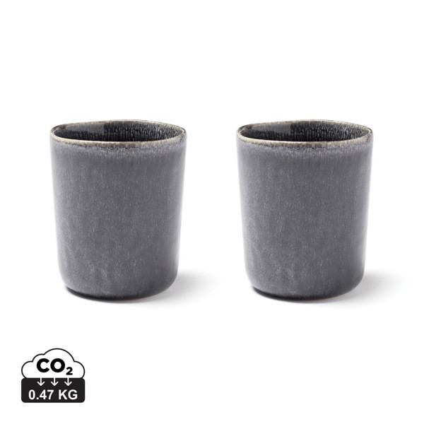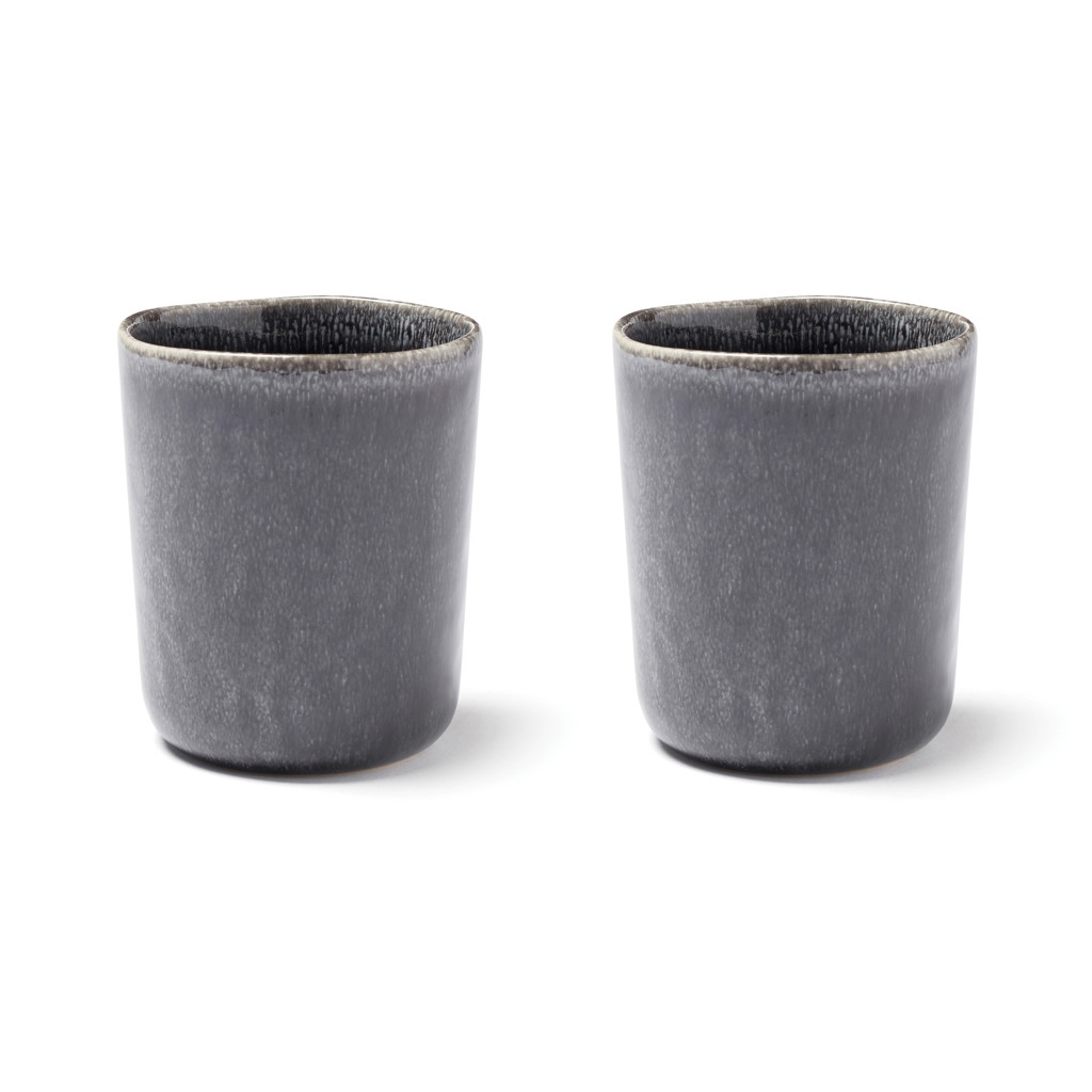 Set of two stoneware mugs. Use for tea or coffee. Nomimono draws its inspiration from nature and the earth around us, creating this rustic range in natural earth tones where no two items are the same. Japanese meets Scandinavian, rustic meets modern. Collectibles for a down-to-earth and inspiring serving. Each item is handmade and glazed three times in order to obtain the right kind of finish. It makes each item completely unique. Dishwasher and microwave safe.
