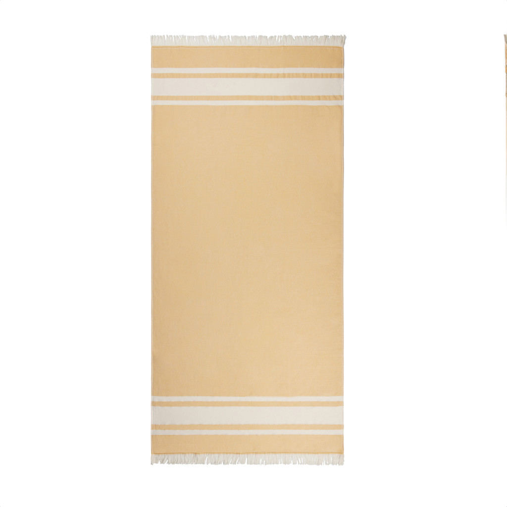 Hammam towel designed with two different types of texture, one side in terry and the other side in plain weave. The two-sided design makes this towel the ultimate companion when you're at the beach, by the pool, or when on an adventure outdoors. It has an excellent absorbency and dries up quickly. The towel is crafted from 75% cotton and 25% polyester and has a thickness of 360 gsm. Measurements: 180x80cm, fringes in 5cm excluded. OEKO-TEX® STANDARD 100. 09.HIN.68091. Hohenstein HTTI.