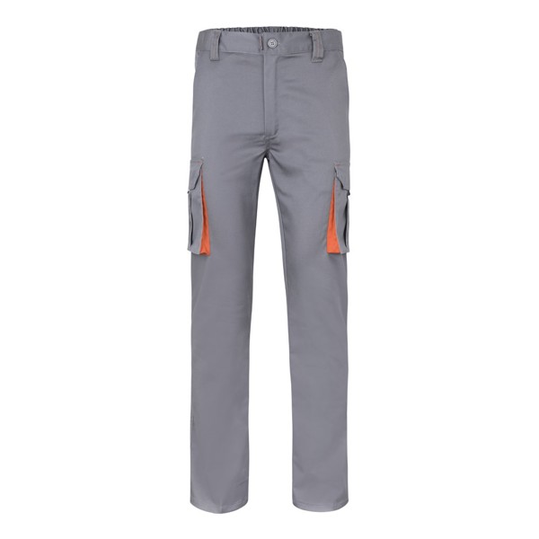 Two-tone, multi-pocket stretch trousers (240g/m²), in cotton (46%), EME (38%) and polyester (16%). Slim Fit, elasticated waistband and contrasting colour on the gussets, pullers and stitching. Contains six pockets (2 French pockets, 2 side gusset pockets and 2 back gusset pockets). Size: 34, 36, 38, 40, 42, 44, 46, 48, 50, 52, 54, 56, 58, 60