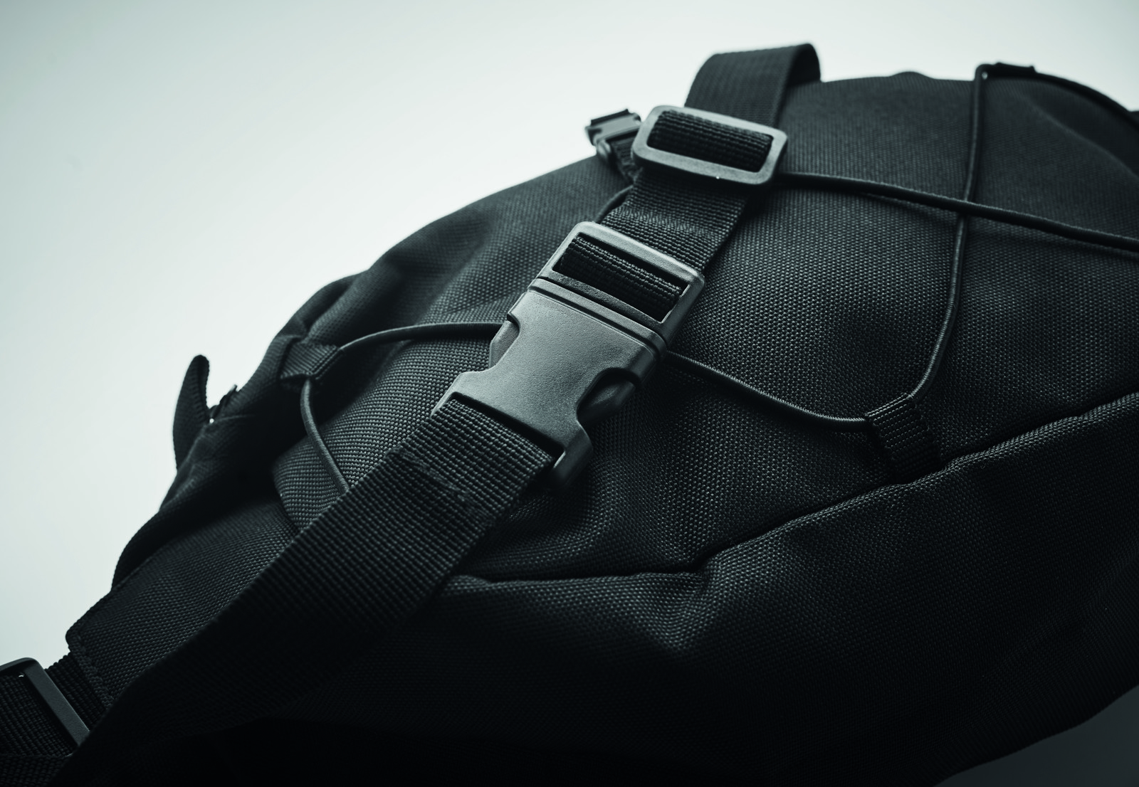Waist bag in 600D RPET polyester with zippered main compartment and adjustable waist strap. Includes inner pocket.