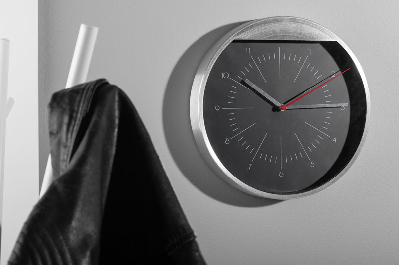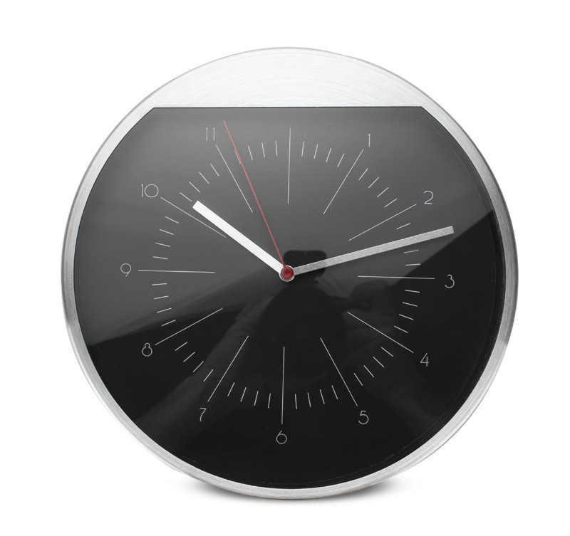 Metal wall clock with a simple, elegant design. Logo might be engraved over the clock's face. It requires 1pc of AA battery that is not included in the article.