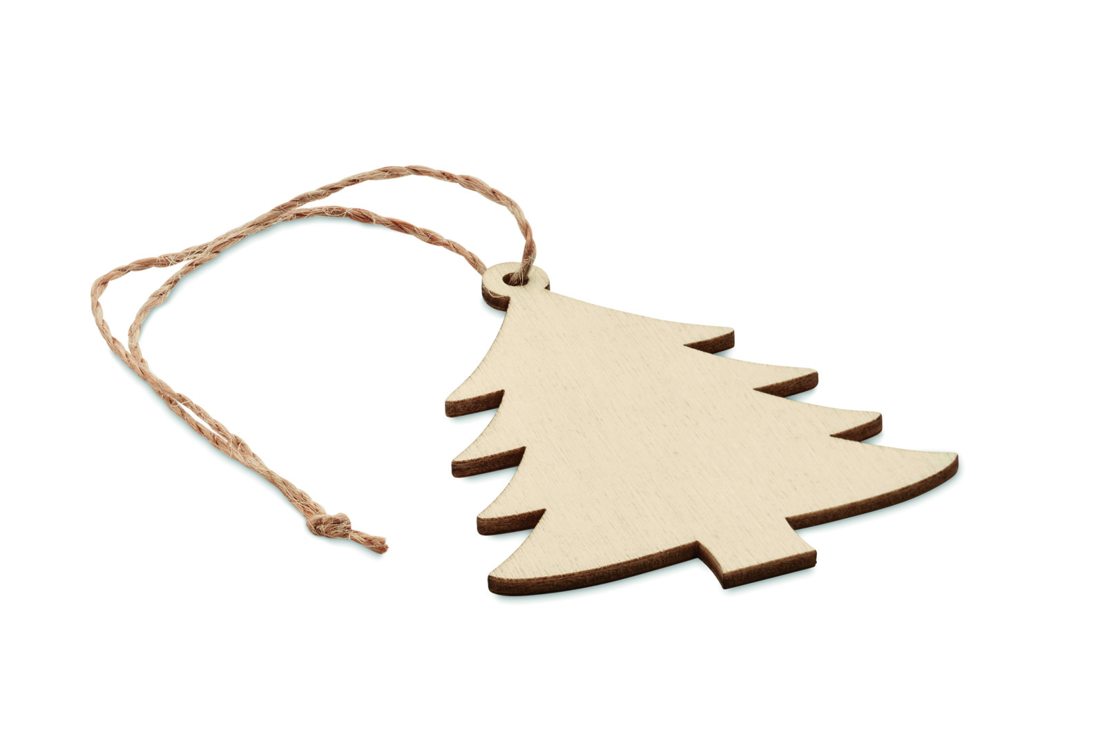 Wooden tree shaped decoration hanger with jute cord. MDF is made from natural materials, there may be slight variations in colour and size per item, which can affect the final decoration outcome.
